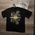 Amiri Men’s Green and Cream T-shirt