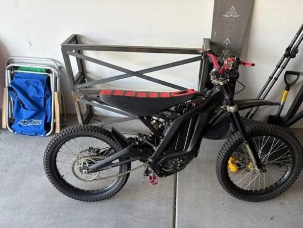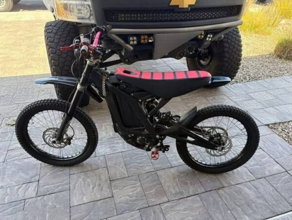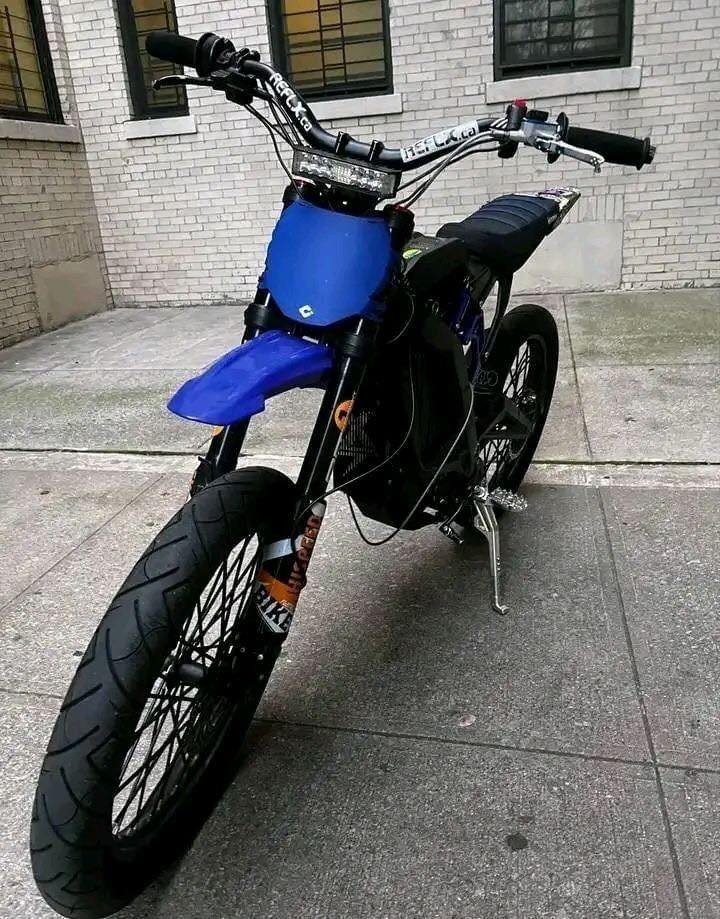 Surron Light Bee 2022 available for purchase. This used bike has 2.3k miles and is equipped with a 60v/32ah battery. It has been well-maintained and features several custom upgrades, including a race spec seat, Warp 9 bars, MX parts foldable break levers, Warp 9 pegs, Shinko tires, and Pro Taper grips.